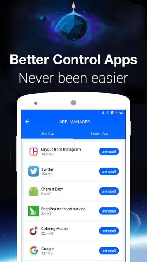 Make it easier to manage your apps. App Manage can help you find rarely used apps, make backups and uninstall unnecessary apps to save more space.