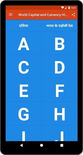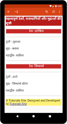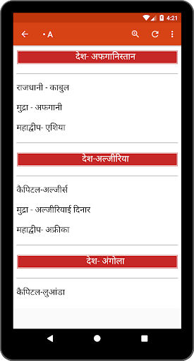 All Countries - Capital, Currency GK Hindi App will provide you the information regarding all the countries in the world, their capitals and their currencies. Country names are listed in alphabetical order.