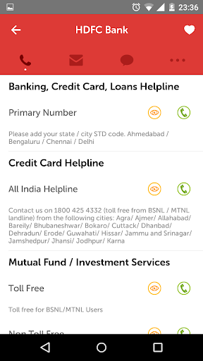 1. Get All Customer Service at One Place: You get call centers number, email addresses of your most used companies all in one app. These include Airlines, Banks, Insurance Companies, Home Loan Companies, Radio Cabs and many more.