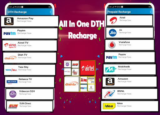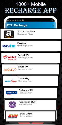 We provide you all dish tv recharge, Jio tv recharge videocon d2h recharge, All DTH Recharge sun direct recharge, tata sky recharge, airtel dth recharge, reliance digital tv recharge and all. You have no need to install many application for tata sky dth plans, airtel dth plans, videocon d2h plans, Jio Tv sun direct tv plans, dish tv plans.