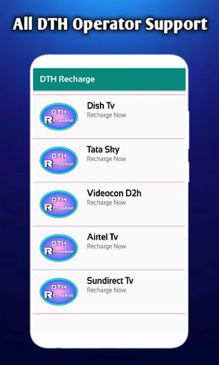 This app include tata sky recharge, dish tv recharge, airtel dth recharge, videocon d2h recharge, sun direct recharge and all.