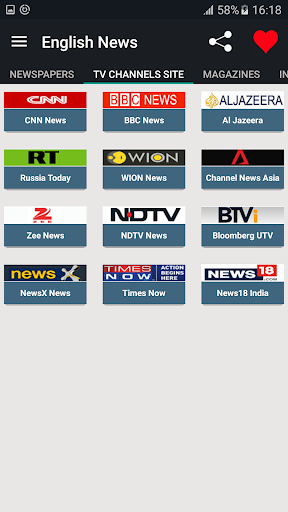 Major English News TV Channels websites: