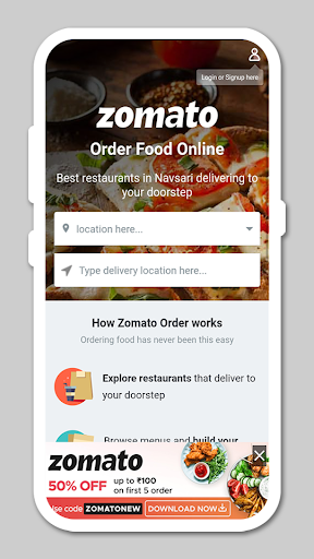 - Order food from Zomato and get your food delivered at home.