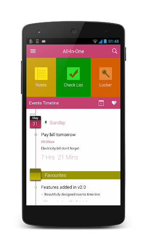 All-In-One is a combined app of Notes, Checklist and Password Locker in one.