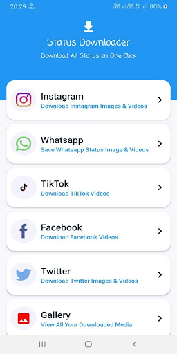 All In One Status Downloader will help you to download images status, GIF status & Video status from your Social Media and share with your friends.