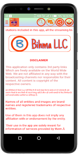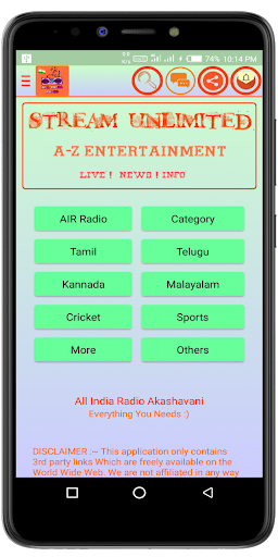 This app does not stream any of the stations included in this app, all the streaming links are from third parties available free on the internet to listen. All the credit goes to Prasar Bharati, Govt. of India. The app is just a collection of all the available stations for AIR listeners in the form of app. If any one finds this app violating broadcasting any copyright protected channels, you can Email us the channel name at singhdilipkumar63@gmail.com. We will remove the channel from our app list subject to validity of your email request. For bugs, FM addition or removal request, please contact us at singhdilipkumar63@gmail.com.