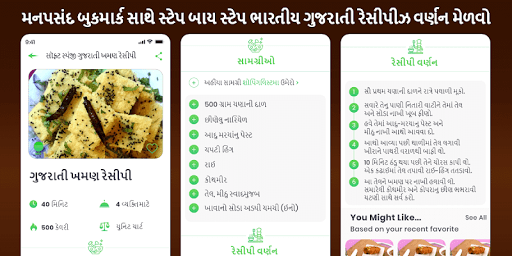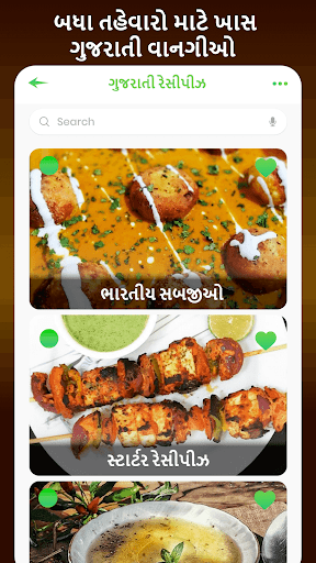 The app All Indian Recipes in Gujarati Offline Food App Cook Book has many good features - like works in All Recipes in Gujarati offline mode, the recipes can be easily bookmarked by using the favorite option, multiple sharing options, facility to search a particular recipe from all tasty vegetarian/non vegetarian.