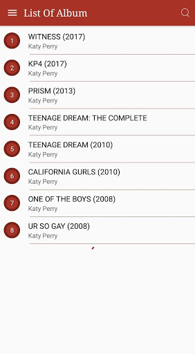 The following albums and songs from Katy Perry: