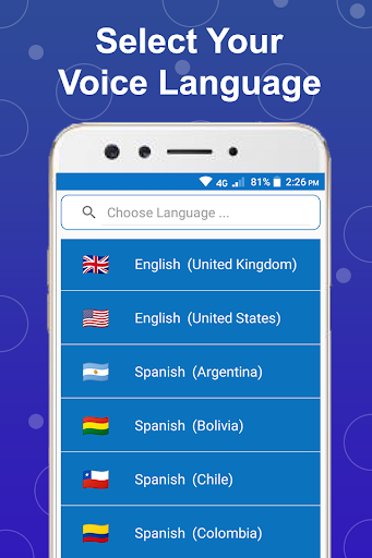 : - ‘’ All languages voice typing keyboard’’ is about all major languages supported as Arabic Kuwait, Arabic Qatar, Arabic UAE, Arabic Morocco, Arabic Algeria, Arabic Saudi Arabia, Arabic Egypt, Basque, English Australia, English India, English New Zealand, English South Africa, English UK, English US, Spanish Spain, Spanish US, Spanish Argentina, Spanish Bolivia, Spanish Dominican Republic, Spanish Ecuador, Spanish El Salvador, Spanish Guatemala, Spanish Honduras, Spanish Mexico, Spanish Nicaragua, Spanish Panama, Spanish Paraguay and many more.