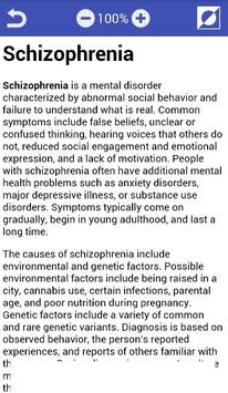 This app contains a description of mental disorders and mental illnesses : definitions , Signs , Symptoms, Syndromes ,Treatment, Diagnosis ....etc ! And more details !