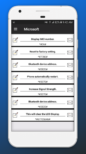 Secret Codes of all mobiles free is an application allowing you to discover hidden functionalities of your android phone.