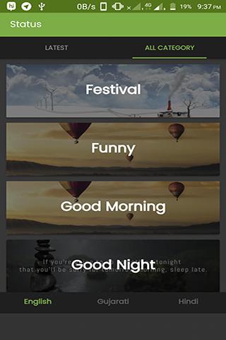 This app good collection of status image and video and this application having facility of set status and sharing your status on you social site.