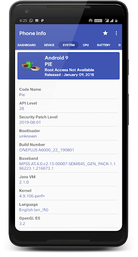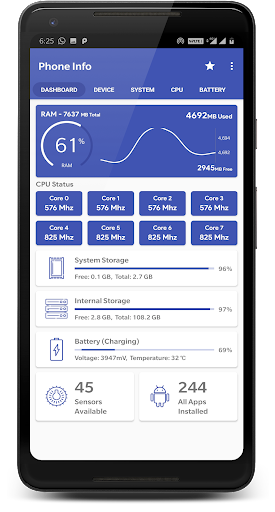 All Phone Info is an android app that allows you to know about your mobile device in detail. You will find all information about your device's hardware and software which are included: