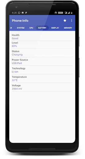 The complete information about your System firmware build. Basic and charging info about your Phone Battery. Also, full info about your phone USB charging. It will also show your phone temperature. You can customize all phone info app themes into multiple colors which you like more.
