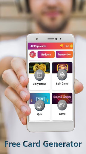 "All Royalcards - Free Gift Card Generator" in this app complete many task and earn coin like daily bonus, spin, scratch cards, lucky spin, watch lucky video, watch special video, play multiple games and get coin, refer friends, many offers, play quiz and won cards those all are task to easily and quickly earn coins and cards.