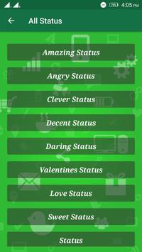 Love Status, Friendship Status, New Status, Romance Status, Sad Status, Crazy Status, Valentines, Sweet, Unique, Best Status, Break up Status, Romantic Status, Valentine day status,Valentine Status, romance status,Wedding Status, Engagement Status, Miss You Status, Islam Status, Holi Status, Funny Status, Exam Status, Birthday Status, FB Status, Cute Status,Status for Whatsapp, Status for Whatsapp 2016, Latest Status and many more.