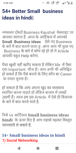 यह App बिज़नस आईडिया पर आधारित एक App हैं, हमने वर्ष 2020 में अपना काम शुरू किया हैं. हम उद्यमिता के क्षेत्र में आने वाले नये लोगो की मदद करते हैं. इस App का मुख्य उद्देश्य व्यापार के उचित मापदंडो को नये व्यवसायी के साथ साझा करना हैं, ताकि वे अपने व्यापार को ठीक से समझ सके और कम से कम जोखिम में व्यापार कर लाभ कमा सके. इस App का यह भी उद्देश्य हैं कि वो लोगो तक नये – नये व्यवसाय के बारे में जानकारी सरल शब्दो में पहुंचाई जा सके .