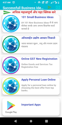 This app helps you know about Low Investment Business Ideas and Startup Business Plan in Hindi. This app provides you a collection of Top Business Ideas in Hindi. .