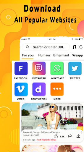 This music downloader app will help you to download video with just one click. Enjoy mp3 downloader with this free video downloader app.
