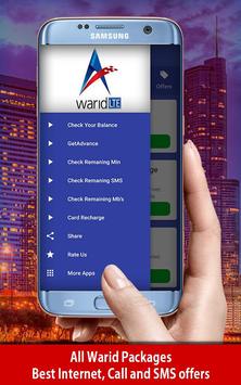 Warid Pakistan Packages also provides information like remaining minutes, SMS, internet mbs and account balance.