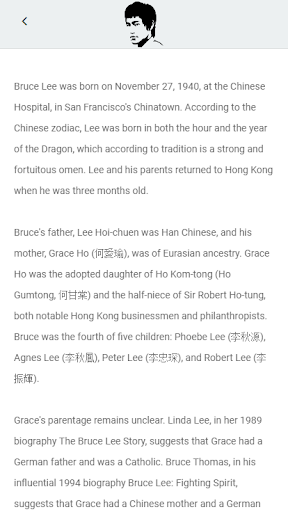 Bruce Jun Fan Lee was born in 1940 in San Francisco, CA while his parents were on tour with the Chinese Opera. Ultimately raised in Hong Kong, Bruce Lee was a child actor appearing in more than 20 films. At the age of 13, Bruce took up the study of wing chun gung fu under renowned wing chun master, Yip Man.