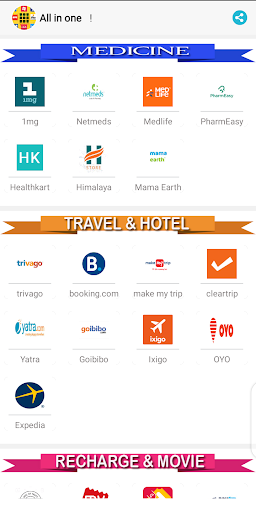 Bharat All in One Online App (Shop, Study & Entertain) with 100 top apps is a one stop destination to shop on more than 50 Shopping Site, Medicine, Study, Entertainmnet and Games in one app