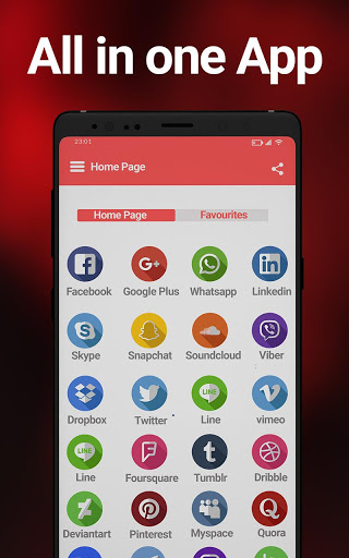 Access and open all favorite social networking sites on a go in one app. Browse all or surf all applications you love on a single application whether it is online shopping apps, news apps, sports apps or music apps as this all in one app covers all application categories in one