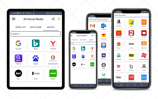 With our all social media app, you can easily access - all social media apps, social networking apps, all search engine apps, online shopping apps, entertainment apps, online food delivery apps, all travel booking app, video maker, all email providers, messenger app, news app online education app, sports news app, online marketing apps, job search app, health apps, online advertising, and ads sites in one place.