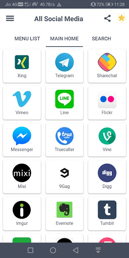 All social media apps in one app is the best combination of all useful and favorite social media apps