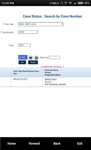 You can Trace the Actual Status of Your Case- What is the hearing date, what was last hearing date of your case, Name, Case Type, Filing Number, Registration Number, CNR Number, Coram, Bench, Petitioner, Advocate, Respondent and many other information.