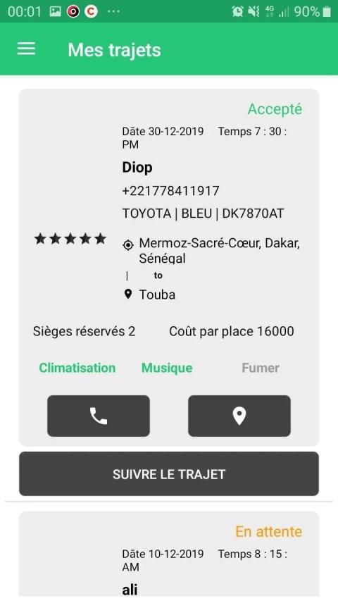 • Recherchez sur Allo Dakar App votre trajet