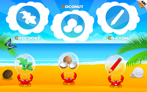 * LETTERS PUZZLE: Help the crabs assemble a letter! Targets memorization of the visual shape of the letter.