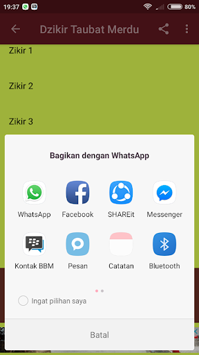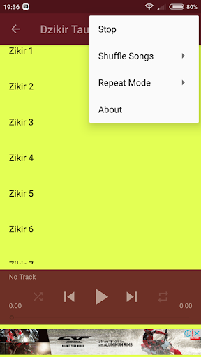 aplikasi ini berisi alunan zikir taubat,offline yang bisa di putar dimanapun dan kapanpun tanpa mengunakan data.