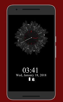It shows live screen saver clock. The live screensaver clock show you the clock which you selected from menu.