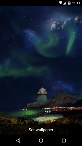 Amazing Aurora Live Wallpaper is a fantastic background which brings you to the remote polar region where the sky is full of bright stars at night. Despite the coldness, there is still a small flowing river surrounded by some small mountains. And on the bank of it stands a light tower. When shaking your phone slightly, you will see a steady light beaconed from the tower. And if starring at the sky, you can also see beautiful green aurora as well as a few shooting stars. Have you already been fascinated by this amazing polar scene? Touching the screen, you can even create shining starlight with fingers.