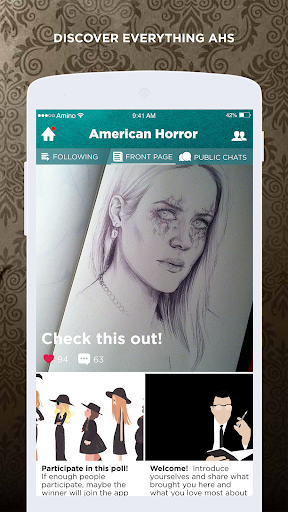 AHS fans unite! Join the fastest growing community for American Horror Story fans. Whether you're into Murder House, Asylum, Coven, Freak Show, or Hotel (or all of them), meet other AHS fanatics, discuss characters, plotlines, fan theories, and share and discover fan creations! AHS Amino is like a forum, chat, and fan community all rolled into one!
