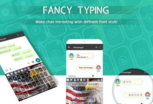 american Keyboard is a free, customized keyboard for Android with cool fonts, 1200 emoji, emoji arts, emoticons, personalized themes, auto correct input ,cool sticker ,Fancy Fonts and GIF Stickers & more.