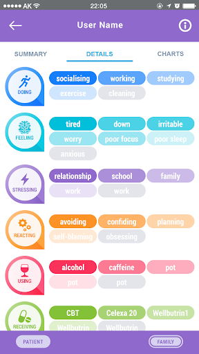 Aminy is your mental health navigator on your road to recovery. Symptom-tracking can be very helpful for people who suffer from mental health problems. But it only works when it's part of a conversation with the people in your Circle of Care - your doctors, therapists, and the family members and loved ones you trust. Created by clinicians in collaboration with youth patients and their families, Aminy is an advanced mental health symptom tracker that connects and strengthens your Circle of Care and helps you to be understood.