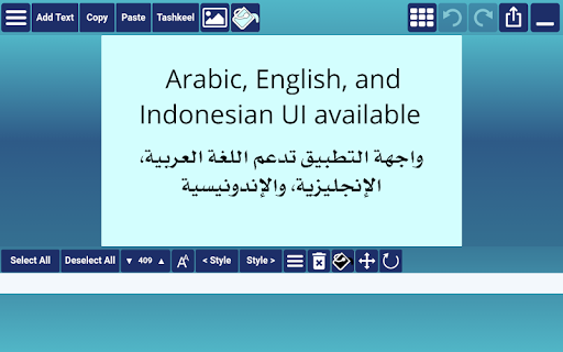- Choose either Arabic, English or Indonesian UI [user interface] and menus.
