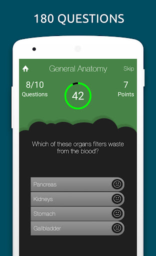 Questions and answers are shuffled randomly every time you play. You can skip a question, if you don't know the answer. Play multiplayer one on one with your friends!