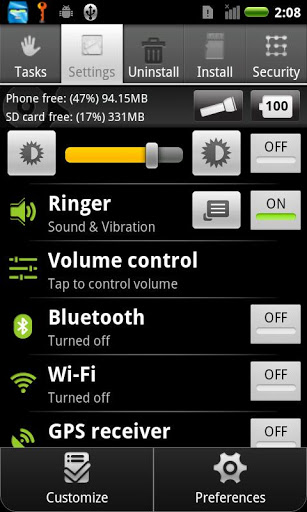 A must have Android utility appDevice Manager, the swiss army knife utility app for AndroidOver 10 apps in 1What can it do? Scan and protect your device from viruses Kill tasks fast and configure your device for optimal battery life Control all Android services and stop the ones that you don39;t need Install or Uninstall apps, even from the SD card Configure and control all your installed apps Configure every aspect of your device including Brightness, bluetooth wifi GPS, Ringers, Volume, and more. Customized flashlight including LED customizable Quickly see everything that is running and how much memory it39;s using kill as needed Quickly see battery life and usage of running apps per battery cycle kill as needed Stays running on the device as a widget control icon on status bar on top Control haptic feedback vibrations backup all your apps onto an SD card Customize the Advanced Manager app itself to your own tastes Even control hidden settings on your Android such as the screen timeout, APN39;s, and many more And much moreGet complete protection for your device using Advanced Device Manager.