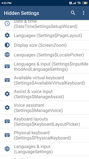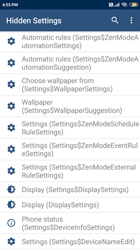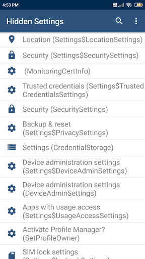 Android Hidden Settings Activities: