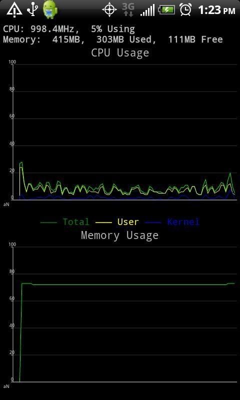 For those who experiences IPv6 issues: the app supports IPv6 actually, by default IPv6 address will be compressed to IPv4 address. If you see any abnormal IP address, could be something with the conversion, please email me the exported report, so that I can fix it. Monitor your android status. It features .CPU Memory usage .Process List .Mobile Network information .Internet Connections .Network Info (IP Address, Gateway, MAC Address) .Wifi Status .Battery Status .Storage(SD Card) Usage .Routing Info ./proc Viewer Support us. Buy Ad free version ($0.99). If you have any issue, please drop us a mail. In a clean UI, it offers equivalent of linux/unix commands like ps, pstree, netstat, ifconfig and route. KEYWORDS: ps, pstree, netstat, ifconfig, ipconfig, route, ip address, gateway, kernel, cpu, memory, wifi, internet connection, process, storage, sd card, mac address, dns server, meid, miei Recent changes: Please change interval if it's running slow on your phone. 0.2b (01/25/2011) . Add secondary sd card support, please specify your mount point in setting, by default it's /mnt/storage/sdcard . Add Mobile network information . Add "Export Android Status", which will export all information to a text file. . Add "Sort by Memory" in process list. . Bug fix PERMISSION CHANGES: The new SD card writing permission is for exporting status to external storage.