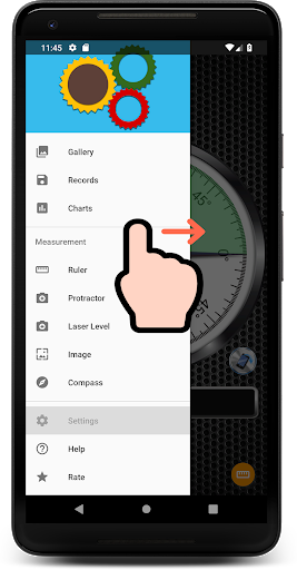 Relative Angle: This mode is useful for measuring angle if object is not parallel to the ground or surface is not even. Touch angle meter bezel to set first portion of the angle, touch again after rotating your device to complete measurement.