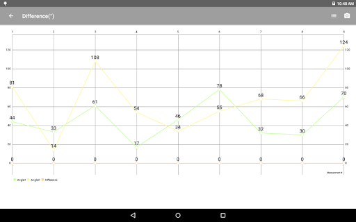 Difference Between Two Angles: This mode is useful for calculating inclination between 2 separate objects. Touch angle meter bezel and fix the first angle. Touch again to fix second and see difference between to angles.