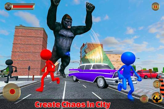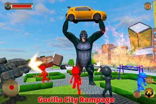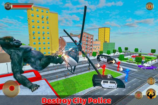 Ultimate rampage is on by wild angry gorilla in stickman city in gorilla games and the best of gorilla fighting games. This animal rampage is about city destruction and chaos with Angry Gorilla vs Stickman City Battle. Stickman police forces and stickman fighters are ready to tackle wild gorilla with stickman shooting and stickman fighting strategies in gorilla city attack game. Animal attack is all about revenge and city destroyer in angry gorilla attack and gorilla city battle. You have to be a monster angry gorilla, best animal smasher and attack on stickman fight forces and destroy their army tanks, police vehicles with police vs gorilla. This stickman police games and gorilla attack simulator has many gorilla vs stickman battle missions in grand city. Fight with stick shooters and strike hard with ultimate gorilla fighting powers to eliminate your enemy.