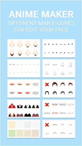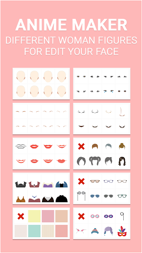 Anime Maker is a unique and adorable avatar creator app. This app have support click action to select anime face, eyes, eyebrows, mouth, nose, hair, goggles, dress,backgrounds etc. With this app you can create your favorite Anime characters or dress up avatar freely.