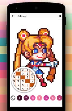 now you can not only watch anime that you love and reading japanese manga, you can enjoy your favorite animes in a productive and engaging way by coloring by number the anime pixel art characters!