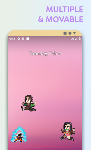 Install Anime Shimeji app, you can make many of your favorite animated characters that play on top of your mobile screen (over other apps).