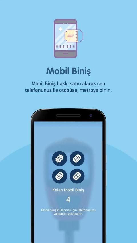 ‘’Bilet Al’’ fonksiyonunu ile telefonunuza biniş paketi yükleyip, telefonunuzun NFC özelliğini kullanarak herhangi bir ulaşım kartına ihtiyaç duymadan uygulamanızla otobüse biniş yapabilirsiniz